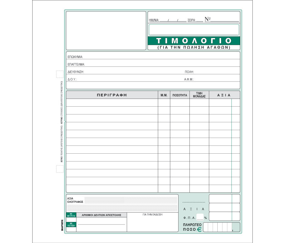 INVOICE FOR THE SALE OF GOODS / DBL CODE 273